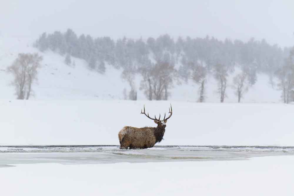 Bull Elk in frozen lake, Yellowstone